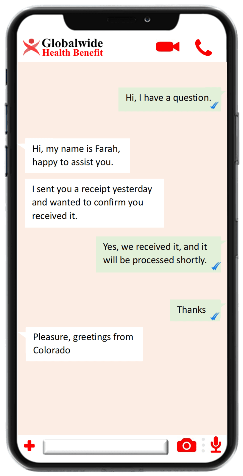 Real-time payment instead of long claim processes. Globalwide Smart Health Card© pays for your medical treatments on the spot in real-time. By paying with your Globalwide Smart Health© Card there are no out-of-pocket payments. No paperwork or long claims processing, no surprises.